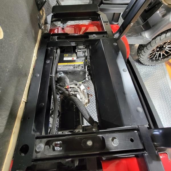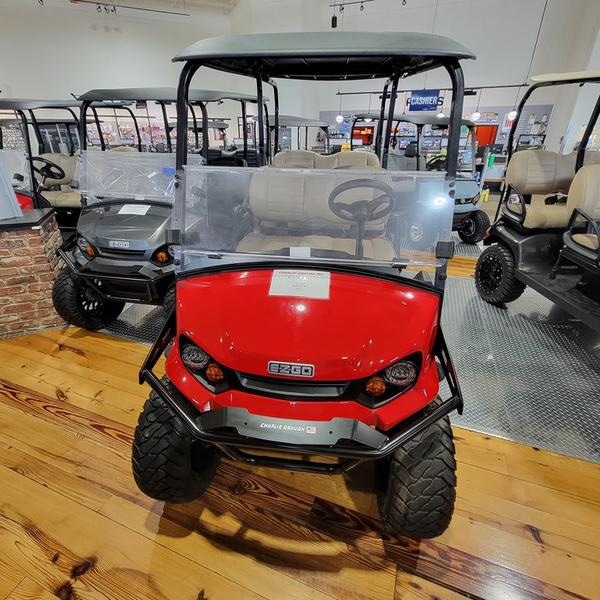2023 E-Z-GO Liberty ELiTE Lithium Flame Red The Vehicle Pushing Everything in a New Direction The E-Z-GO® Liberty is a first-of-its-kind vehicle pushing everything in a new direction with its four-forward facing seats. As an ELiTE lithium vehicle the E-Z-GO Liberty is powered by a proven, maintenance-free Samsung SDI lithium battery system that will propel your next adventure. Make the best of every moment while experiencing unmatched maneuverability, increased comfort and more performance. Explore your next adventure with the E-Z-GO Liberty. POWERTRAIN The E-Z-GO Liberty is offered exclusively as an ELiTE Lithium vehicle. Get consistent power regardless of your level of charge, and charge any time you like, faster and more efficiently than with standard, lead-acid batteries. Features may include: STANDARD PREMIUM INTERIOR The Premium Interior offers lighted cupholders, premium steering wheel, land individual key switch, glove box door, mats and shelf. FOUR FORWARD FACING SEATS Enjoy a spacious and secure second row that will give your passengers a whole new perspective. UNMATCHED HANDLING AND CONTROL With its optimized wheelbase, Liberty gives you a tighter turning radius and enhanced maneuverability.