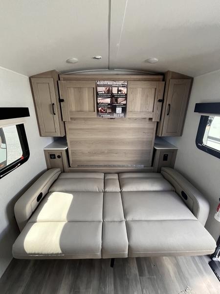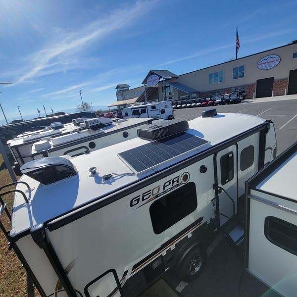 2024 Forest River Rockwood Geo Pro G19FD Rockwood Geo Pro Travel Trailers YOUR IDEAL FLOOR PLAN, PERFECTLY SIZED. Our Geo pro travel trailers are everything you want and need in a camping experience in a package that is easily towable. Bigger off road tires with a great standard solar package allow you to take these to places you never deemed possible. For select models, an optional power package unlocks a realm of boundless potential, awaiting your every aspiration. The Rockwood Geo Pro 19FD has a Murphy bed that creates all the space needed for a great couples coach. The windows beside the dinette are very large and easy to see your campsite from. The bathroom in this model goes all the way across the back end of the coach giving you the most space you can get in a unit this size. At 20’ long and just over 3000 lb, this model is perfect for anyone that wants to hunker down at a great park or with solar equipped boondocking for a long period of time. Features may include: Exterior Magnetic Baggage Door Catches Outside Griddle with LP Hookup 2- 20 lbs LP Tanks Ground Solar Prep Polished Alloy Wheels Tinted Bonded Frameless Windows Laminated Clay with Alloy Band Fiberglass Sidewalls 200W Roof Solar Panel with 1800W Inverter Outside Spray Port AIR 360+ OMNIDIRECTIONAL ANTENNA / WITH WIFI PREP (N/A 12S) Truss Stabilizer Jack Fold Out Entry Steps Roof Ladder Front Windshield Outside Speaker Power Awning Heated Holding Tanks 2" Hitch Receiver Interior Roller Shades 20,000 BTU Furnace 12V Smart Entertainment TV w/stereo