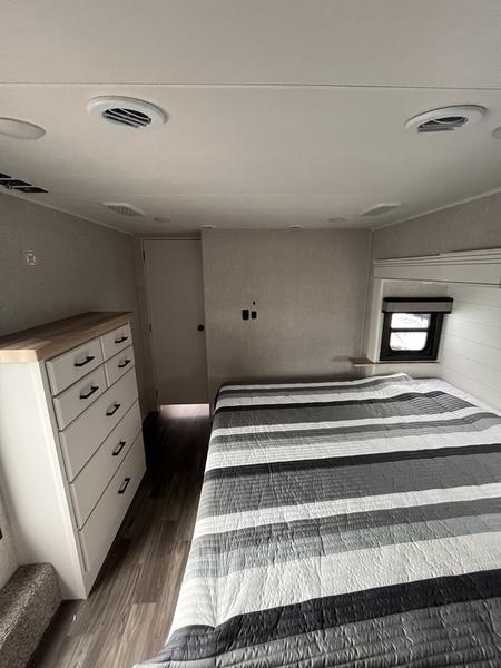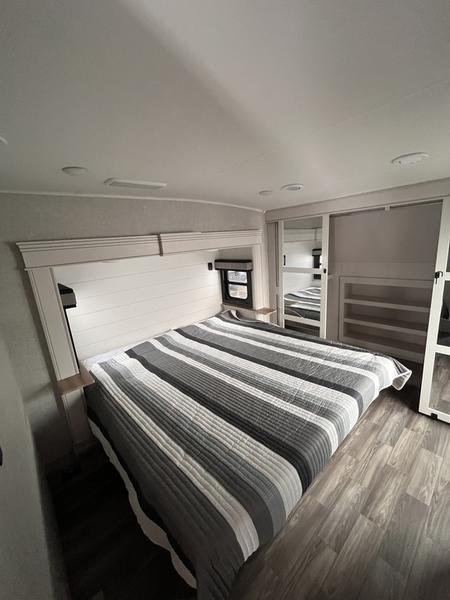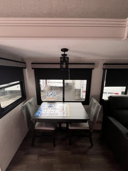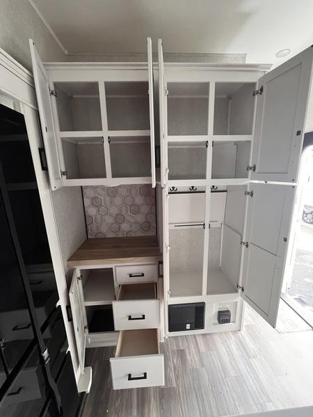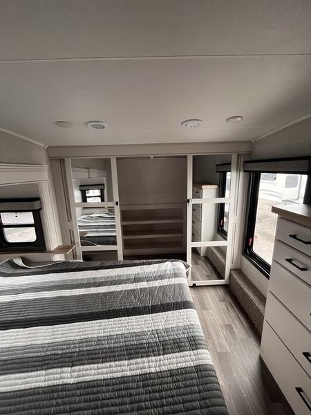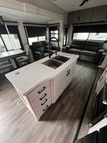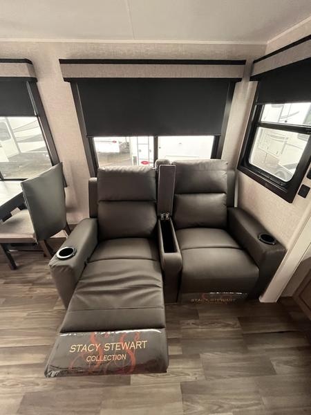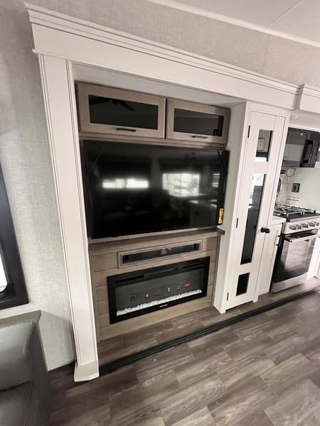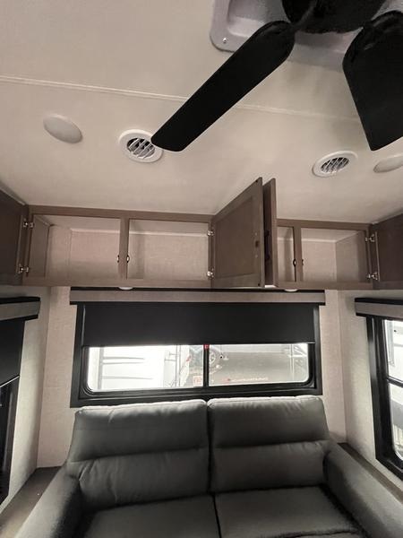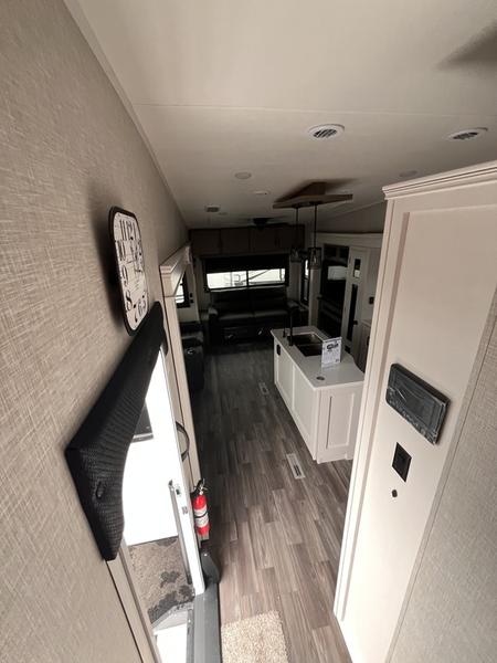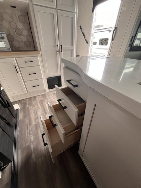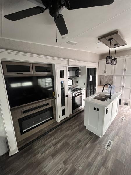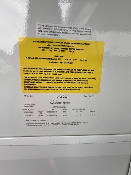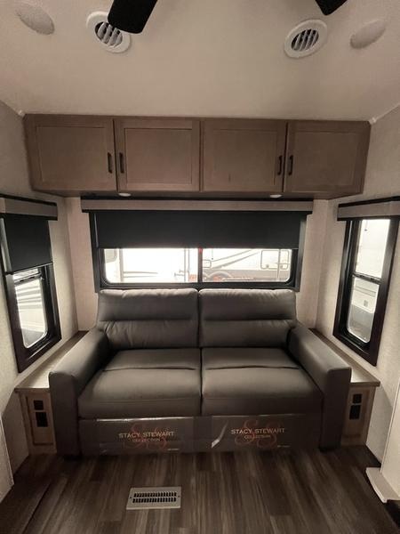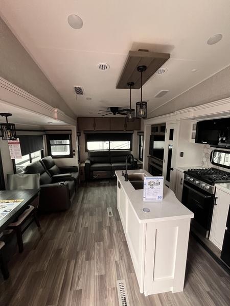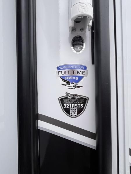 2024 Jayco Eagle Fifth Wheels 321RSTS Move to a new level of luxury with Jayco’s Eagle Fifth Wheel. It takes the best of the Eagle HT Fifth Wheel and adds in even more luxurious touches like a 24-inch GE stove, a dual 15K whisper quiet A/C, legless free standing dinette with pivoting and extension function for a desk, and the JayPort system with 22-inch griddle, deep sink and hot/cold water connections. Each of the floorplans in the Eagle Fifth Wheel lineup include the 5 star handling package with Dexter ABS and tow assist braking system. Features may include: Exterior 1.5 in. fresh water drain valve 5 in. Magnum Truss™ Roof System with Alpha roof membrane system with limited lifetime warranty 50-amp detachable power cord LED lighting in pass through area with 3-way switches Auto-grade vinyl graphics Automotive style front cap with max turn radius (painted on select models) Battery disconnect in pass through area Black tank flush Climate Shield™ zero-degree tested weather protection: Fully enclosed and heated underbelly (ducted) 35,000 BTU furnace Double layer fiberglass batt insulation in ceiling and floor Double sided radiant barrier insulation (roof, floor and behind cap) PEX plumbing Commercial grade rubber flooring in pass through area Digital TV antenna with WiFi prep Dual 30 lb. LP bottles Dual channel exterior speaker Factory installed roof ladder Galvanield steel coated outside kitchens HELIX Cooling System™ (industry exclusive): Jayco exclusive insulated dual duct design Directional and closeable A/C vents Larger return air vents with user accessible filters Independent satellite and cable hookups JaySMART™ (Safety Marker And Reverse Travel) exterior LED lights LED exterior lighting package LP quick connect for gas griddle (next to JayPort) Metal slam latch baggage doors Nautilus 2.5 water connections Nitrogen filled undermount spare tire (model/option varies 15 in. or 16 in.) Quick connect water connections (door side hot/cold and off door side cold only) Slide topper/awning prep Stronghold VBL™ walls (laminated sidewalls, rear walls and slide out walls) Interior 2-piece high gloss bathroom surround 5/8 in. tongue-and-groove plywood flooring 75 lb. full extension drawer guides 90 in. x 92 in. residential quilted bedspread (both queen and king mattresses) Bathroom skylight Bedroom TV prep C.P.A.P. prepped bedroom Extra 120V power outlets in kitchen and slide rooms (where applicable) Furniture cup holder tables (1 pair) Gas strutted under bed storage Handcrafted and glazed door/drawer fronts (new sizes) Inverter pre-wire (multiple locations) ((7) 110 outlets) (6 USBs 12V) LED backlit medicine cabinet with custom framed mirror LED lights with dimmer switches and motion activated (throughout interior) Matte black kitchen faucet with pull-out sprayer Porcelain foot flush toilet Residential vinyl flooring throughout Solid hardwood slide fascia Stainless steel kitchen sink USB charging ports (multiple locations throughout)