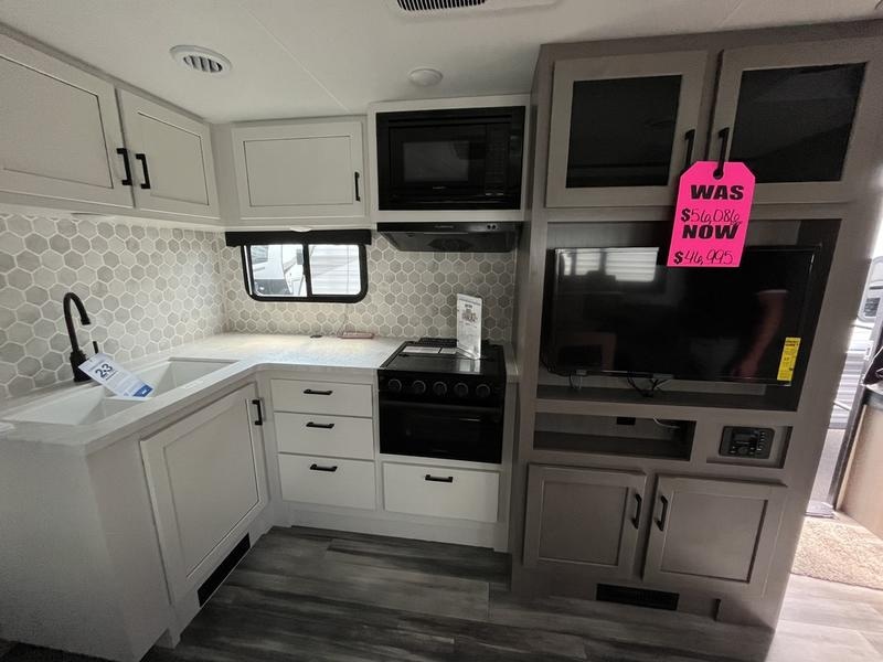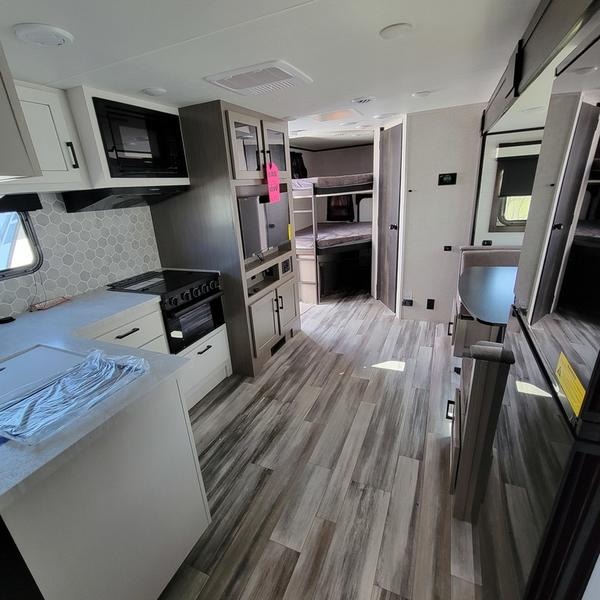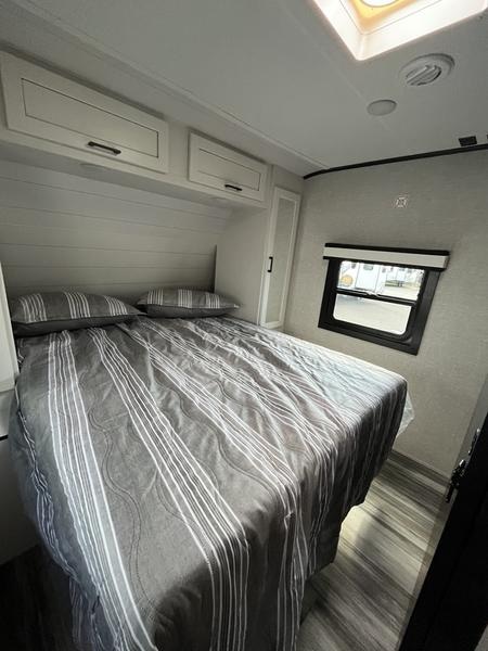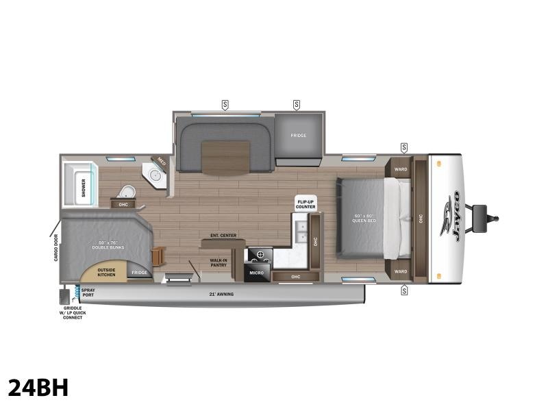 2024 Jayco Jay Feather 19MRK The Jayco Jay Feather is up for adventure with Climate Shield ultimate weather protection tested from 0 -100° F. The Jay Feather is constructed with stronghold VBL™ with double-sided Azdel perimeter walls and a 2-inch vacuum-bond laminated floor. Beyond superior exterior construction, the Jay Feather offers excellent interior amenities, too. Inside you’ll find a 10-cubic-foot 12V fridge, a 32 or 39-inch smart LED TV, a 60- by 80-inch queen bed and a MaxxAir power roof vent. Jay Feather floorplans come with 16-inch Goodyear American-made tires with self-adjusting electric brakes and 55-gallon fresh water tank, so you can feel safe and prepared as you travel down the road. Features may include: Exterior 5 in. fresh water drain valve 2 in. Stronghold VBL™ floor with 2 lb. density foam Aerodynamic, rounded front profile with aluminum framing American-made Norco Z-frame with integrated A-frame Automotive-style aluminum rims Battery quick-disconnect Bumper-mount bracket for 17 in. griddle Dark-tinted safety-glass windows Exterior TV bracket with 120V and cable hook-ups Factory installed rear roof ladder Front molded decorative cap (select models) Galvanized steel and impact resistant wheel wells Keyed-Alike™ locking system Magnum Truss™ Roof System with limited lifetime warranty Marine grade exterior speakers with blue LED accent lighting Mounted camera bracket for pre-wired side and rear back-up prep Outdoor camp kitchen with galvanized steel bases (select models) Stronghold VBL™ walls with double-sided Azdel composite (sidewalls, rear walls and slide out boxes) Swing-out entry door assist handle Interior 4 in. high-density dinette cushions with vinyl backing 4 in. Teddy Bear soft-touch bunk mats (select models) 60 x 80 in. residential queen beds (60 x 76 in. in Murphy bed models) 75 lb. full extension drawer guides Bathroom skylight Decorative backsplash Decorative roller shades with reflective barrier Directional and closeable A/C vents Foldable and portable dinette table with solid steel base (select models) Gas-strutted under bed storage (most models) Handcrafted, hardwood door/drawer fronts Hidden-hinged cabinet doors High output auto-ignition LP gas furnace LED lighting throughout Plywood dinette, bed, bunk and shower/tub bases Powered roof vents in bathroom and main bedroom (most models) Residential style kitchen countertops Residential vinyl flooring throughout Screwed and glued cabinet stiles USB charging ports (multiple locations throughout)