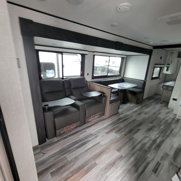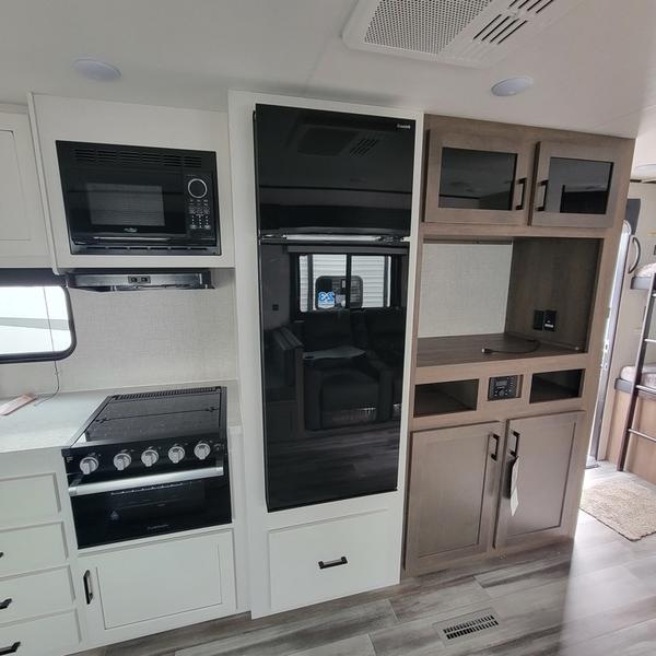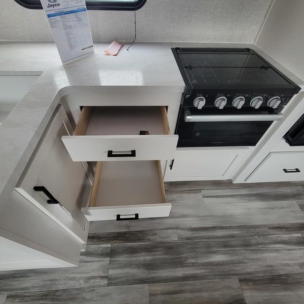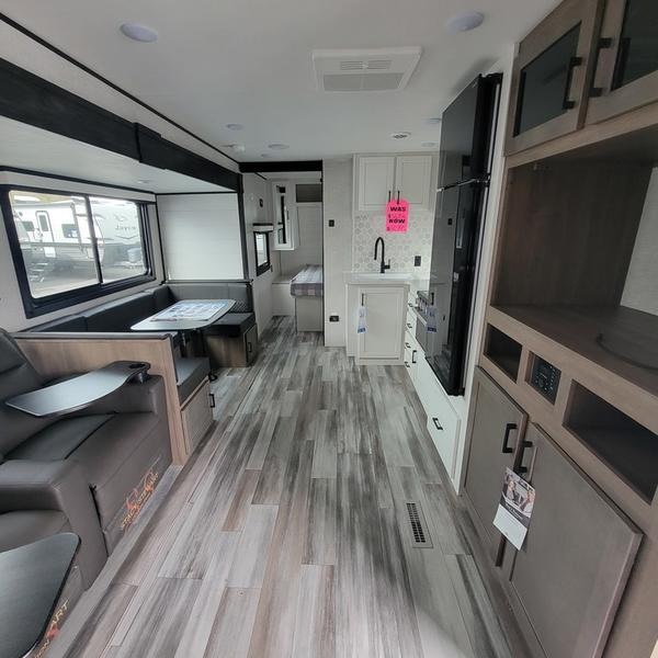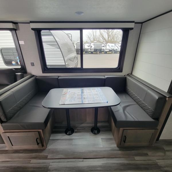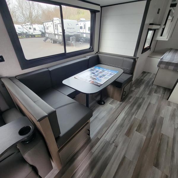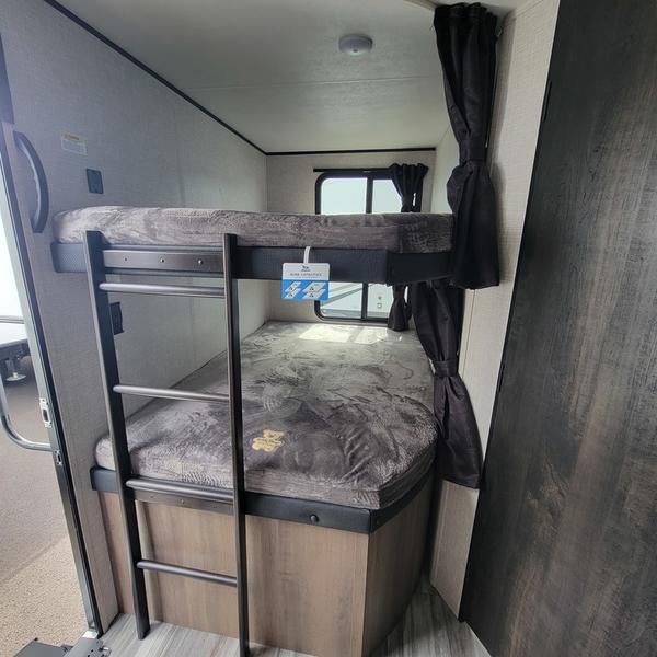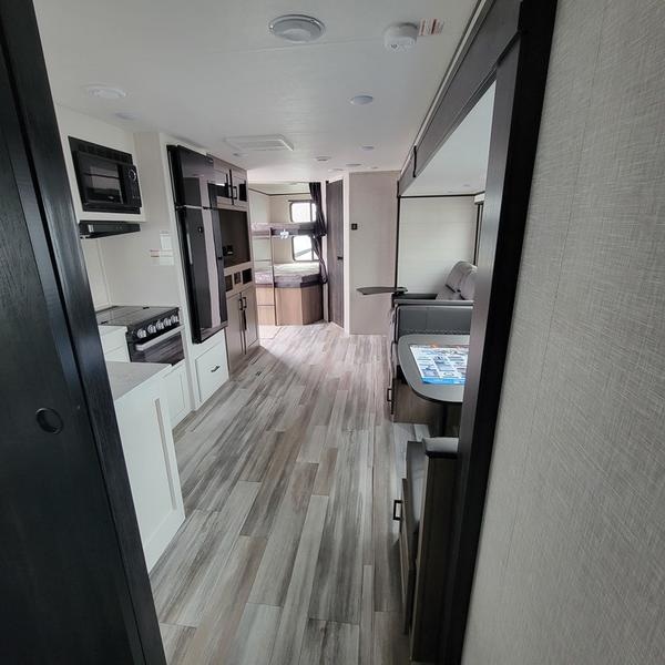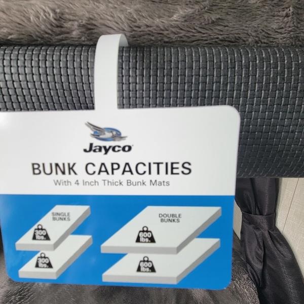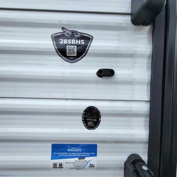 2024 Jayco Jay Flight 285BHS The Jay Flight is the perfect family camper and one of the most popular offerings in our lineup. Part of its appeal is its consistent performance and solid construction. Jay Flight uses plywood construction for the floor, roof, bed and bunk bases, an integrated A-frame, dark-tinted windows for privacy and UV protection, Goodyear® tires and linoleum throughout – including slide room floors. Varied and versatile, Jay Flight offers all the most popular floorplans and then some. With lengths between 25’ 4” and 40’ 6” and the ability to sleep up to 14 people, there’s a floorplan to fit almost any family. Features may include: Exterior 20 lb. LP bottles with cover (2) 30-amp service 5/8 in. tongue-and-groove plywood floor decking Axles with electric, self-adjusting brakes and easy-lube hubs Enclosed underbelly Exterior TV mount and bracket Front diamond plate (Indiana built units only) Fully integrated A-frame Galvanized steel, impact-resistant wheel wells I-Class™ cambered structural steel I-beams Large exterior downspouts LP quick connect (outside gas grill prep) Magnum Truss™ Roof system with plywood decking Seamless one piece roof material Interior 300 lb. rated bunk beds (select models) 4 in. thick bunk mats (select models) 600 lb. rated bunk beds (double bunks) 8 cu. ft. 12V refrigerator (Indiana built units only) 81 in. ceiling height Heavy-duty, 75 lb., full-extension, steel ball-bearing drawer guides J-Steel™ jack-knife sofa with armrest and cup holders (most models) Main bed struts Plywood bed platforms Privacy curtains in bunk areas (select models) Queen mattress Residential-style kitchen countertops Shower curtain with curved shower track (select models) Shower/tub surround Smoked-glass cabinet door inserts (select models) Solid hardwood cabinet doors USB charging station Vented bunk windows (select models) Vinyl flooring throughout (including slide floors) Window shades Wooden bedroom doors (select models)