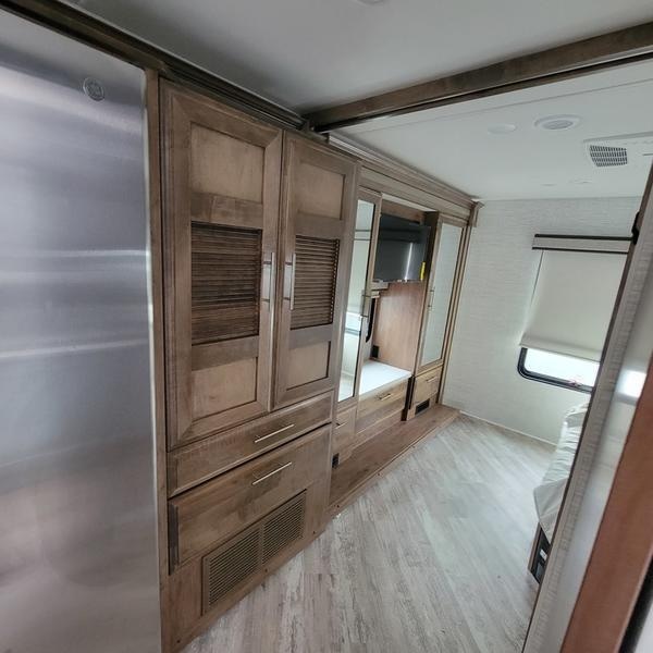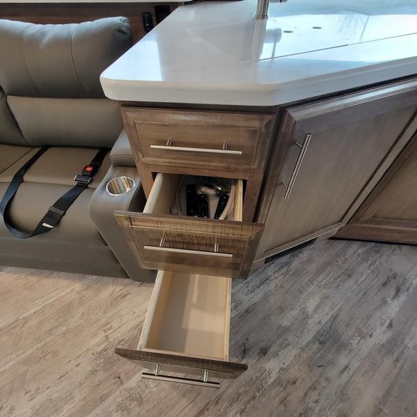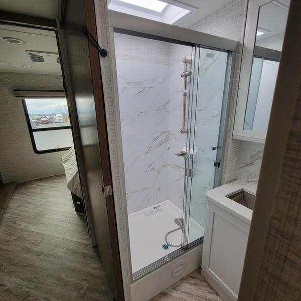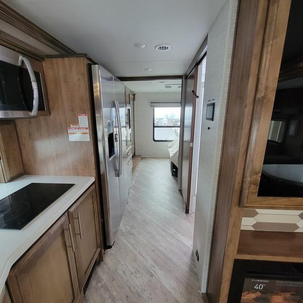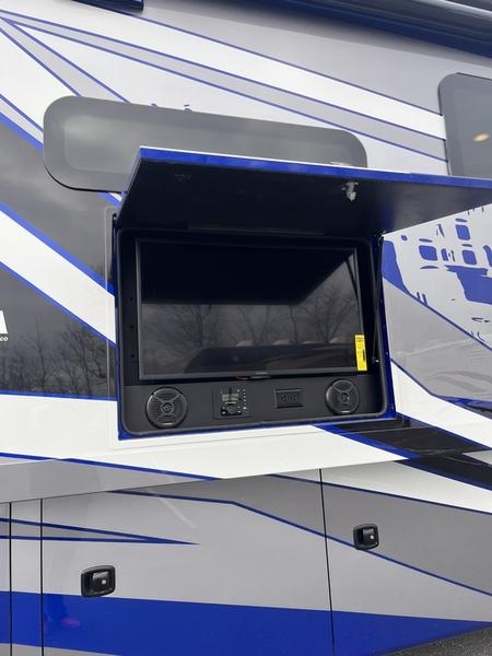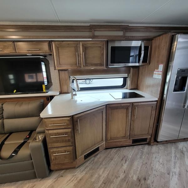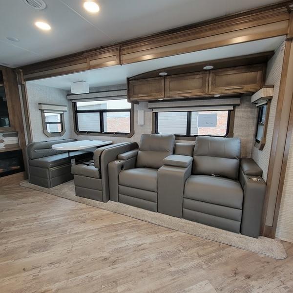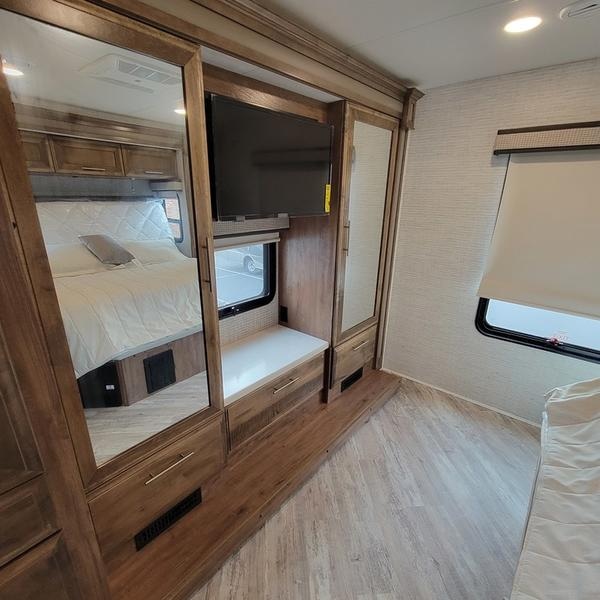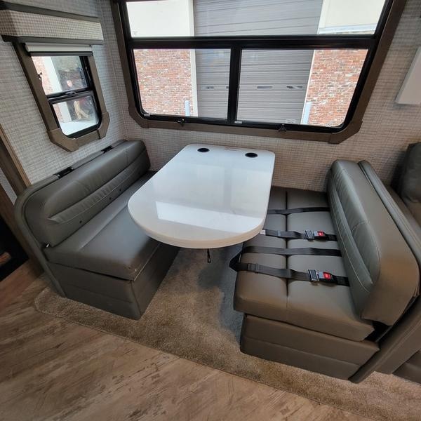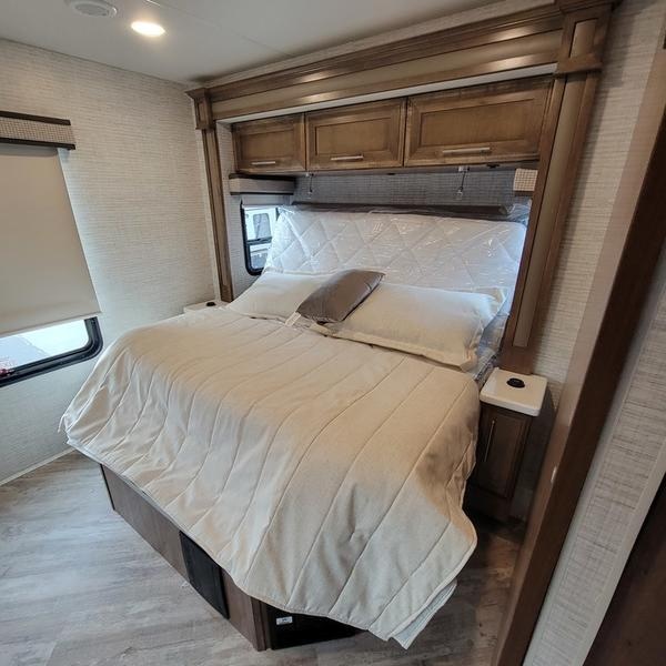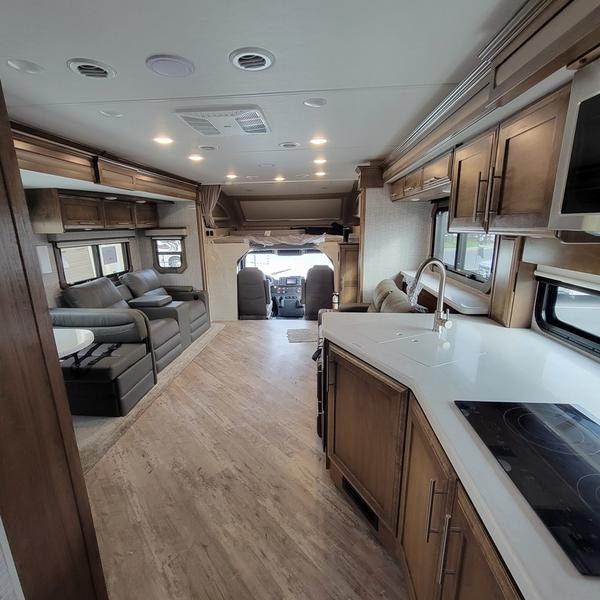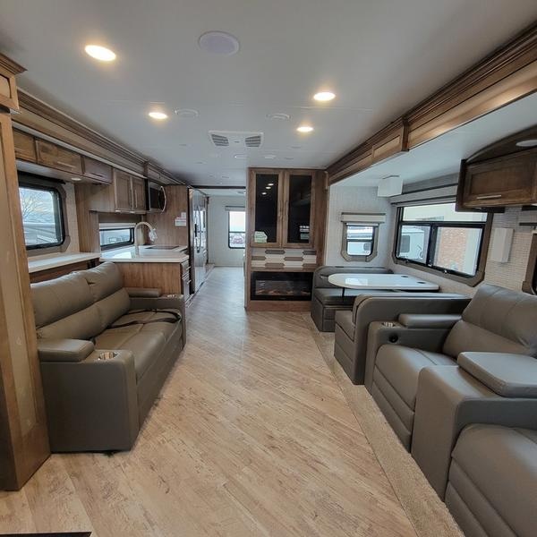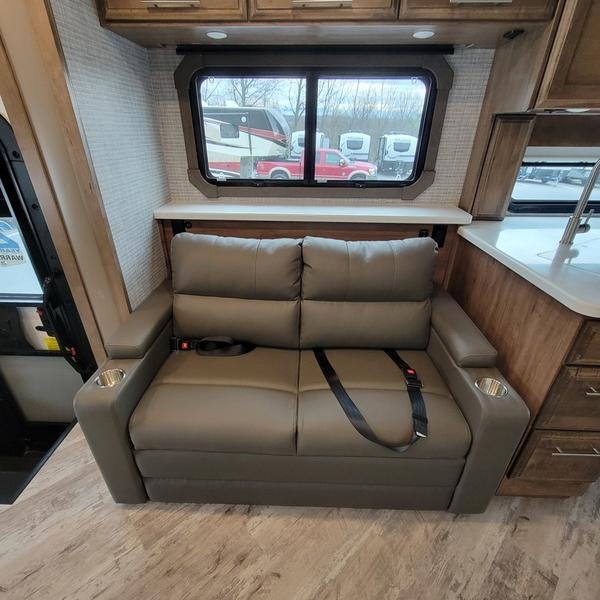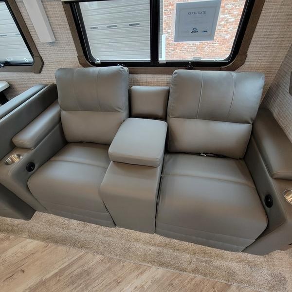 2024 Jayco Seneca 37M The Seneca Super Class C is built on the powerful Freightliner® S2RV chassis with a Cummins® ISB 6.7L 360HP diesel engine and features the JRide® Premium ride and handling package for a smooth and comfortable ride. The Seneca interior received a makeover for 2024 with a new Fossil interior design package and updated plank flooring, door profiles, solid-surface countertop color, hutch backsplash and wallboard. If you work from the road, or just want to stay connected wherever it takes you, the new Starlink satellite internet option will have you covered. Features may include: Exterior StrongholdVBL™ roof, floor and sidewalls Bead-foam insulation (R-24 max roof, R-9 max floor and R-8 max walls) One-piece, seamless, crowned fiberglass roof Premium Sikkens full-body paint Automatic hydraulic leveling jacks Entrance door with industry’s largest travel-view window Electric-powered entrance step Slideout awning(s) Exterior entertainment center with outside speakers and LED HD Smart TV mounted on swivel bracket Winegard® In-motion satellite dish Carpeted, full pass-through storage compartments with lockable slam-latch doors Thetford® Sani-Con Turbo macerator system Third brake light Cable TV hookup with RG-6 coax and video selector switch Winegard 2.0 Wi-fi/4G antenna Onan® 8,000W Quiet Diesel generator and auto-gen start 200W solar panel with dual controller (4) 6V AGM (220Ah) house batteries on slideout tray Transfer switch with reverse polarity protection 24.5 gal. propane tank (83 lb.) LP quick-connect hookup Exterior utility center Winterization drain system Black tank flush Outside shower 12V demand water pump Water filtration system Interior Custom-molded ABS surround in cab-over area Overhead bunk with 750 lb. capacity Firefly total coach control system with wall-mounted touchscreen and mobile app 84 in. interior ceiling height with padded vinyl ceiling Day/night roller shades in living area High-intensity, recessed LED ceiling lights Vinyl plank flooring Hardwood cabinet doors and drawer fronts Deluxe hidden cabinet hinges Ball-bearing drawer guides 30,000 BTU auto-ignition furnace 10 gal. gas/electric water heater Electric fireplace Jayco-exclusive, easy-operation legless dinette table 2-point lap safety belts in all designated seating locations Car seat tethers (select floorplans) LED HD Smart TV in living area Wood-framed kitchen window with spice cabinets 2-burner induction cooktop LED-lit, solid-surface kitchen countertops with recessed stainless steel sink and sink covers Shower with decorative surround, glass door, skylight and light Porcelain toilet with foot flush Recessed stainless-steel bathroom sink Powered roof vent in bathroom with wall switch Walk-around, king-size bed with power head lift, bedspread and nightstands USB port and wireless charging in nightstands Under-bed storage LED HD Smart TV in bedroom Large wardrobes