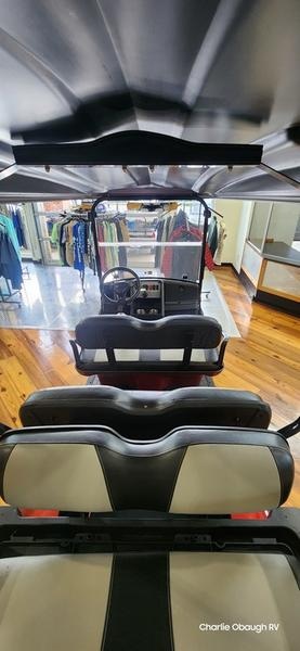 2025 E-Z-Go Express 6 ELiTE Lithium Lifted Inferno Red Take the Long Way Home Take the whole family or a bunch of friends along for the ride in the 6-passenger Express 6 — and expect to turn a few heads. You and your passengers will enjoy extended legroom, optional enhanced front suspension, and a bold, eye-catching design. Choose between our efficient 13.5-HP closed-loop EFI gas powertrain or the maintenance-free ELiTE™ lithium drivetrain powered by Samsung SDI technology. Features may include: Rear Seat with Enclosed Storage Bring more along for the ride. With convenient, enclosed storage, the rear-facing seat provides both comfort and functionality. Premium Dashboard With Extra Storage Experience a stylish interior with a premium golf cart dashboard — featuring versatile cup holders and more functional storage.