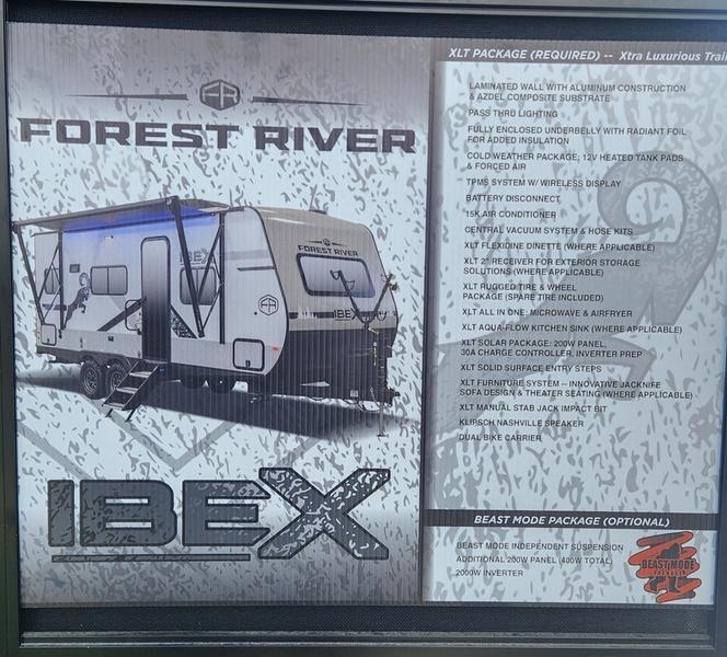 2025 Forest River IBEX Travel Trailers 20MDS IBEX Travel Trailers Looking for a premium lightweight towable option? IBEX offers a variety of unique floorplans that are perfect for families looking for their next adventure. If you’re a weekend warrior setting up camp at local campgrounds, the XLT package gives you all the amenities to make your weekends enjoyable with the ones you love. If you’re looking to travel off the beaten path and see the beautiful country, BEAST MODE has you covered. With the Curt independent suspension, 400W of solar and a 2000W inverter IBEX can take you places never seen before! Our RV Suite lineup is a perfect blend of innovation, luxury, and environmental sustainability. Truly in a category of its own, the RV Suite combines the adventurous spirit of camping with the convenience and sophistication of modern living. With all-electric functionality, innovative interior designs, and a cozy rear patio, the RV Suite redefines the “destination” camping experience!