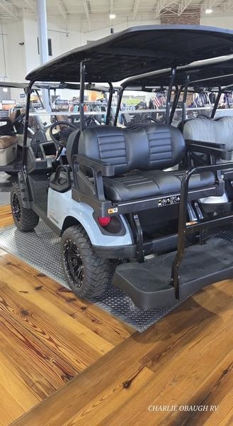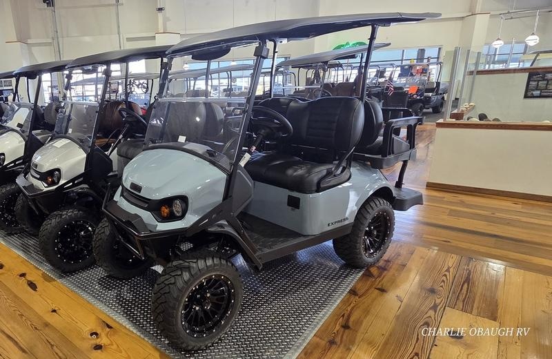 2026 E-Z-Go Express 4 Adventure 13.5 Gas Ocean Grey Built for High Performance The E-Z-GO® Express 4 is built to take you everywhere you never knew you could go in a golf cart, with stylish features such as LED headlights, lifted and standard ride height options, and premium packages featuring automotive-style seating and touch screen technology. Each turn of the ignition is the start of a great time in the Express 4. Features may include: Powerful 13.5 HP Engine The Express 4 comes exclusively with a 13.5-HP gas engine for increased power. Lifted & Standard Ride Heights The Express 4 offers both standard and lifted ride heights depending on the trim and package selected. Modular Canopy Style Protect yourself from the elements without sacrificing style. Our new modular canopy features a sleek design with a built-in water management system and integrated hand grasps, and easily converts from a 54" top to an 80" top. Premium Tire and Wheel Options Personalize your 4-passenger vehicle with stylish tire and wheel options that improve your ride.