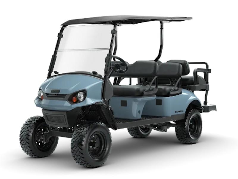 2026 E-Z-Go Express 4 Commuter 13.5 Gas Ocean Grey Built for High Performance The E-Z-GO® Express 4 is built to take you everywhere you never knew you could go in a golf cart, with stylish features such as LED headlights, lifted and standard ride height options, and premium packages featuring automotive-style seating and touch screen technology. Each turn of the ignition is the start of a great time in the Express 4. Features may include: Powerful 13.5 HP Engine The Express 4 comes exclusively with a 13.5-HP gas engine for increased power. Lifted & Standard Ride Heights The Express 4 offers both standard and lifted ride heights depending on the trim and package selected. Modular Canopy Style Protect yourself from the elements without sacrificing style. Our new modular canopy features a sleek design with a built-in water management system and integrated hand grasps, and easily converts from a 54" top to an 80" top. Premium Tire and Wheel Options Personalize your 4-passenger vehicle with stylish tire and wheel options that improve your ride.